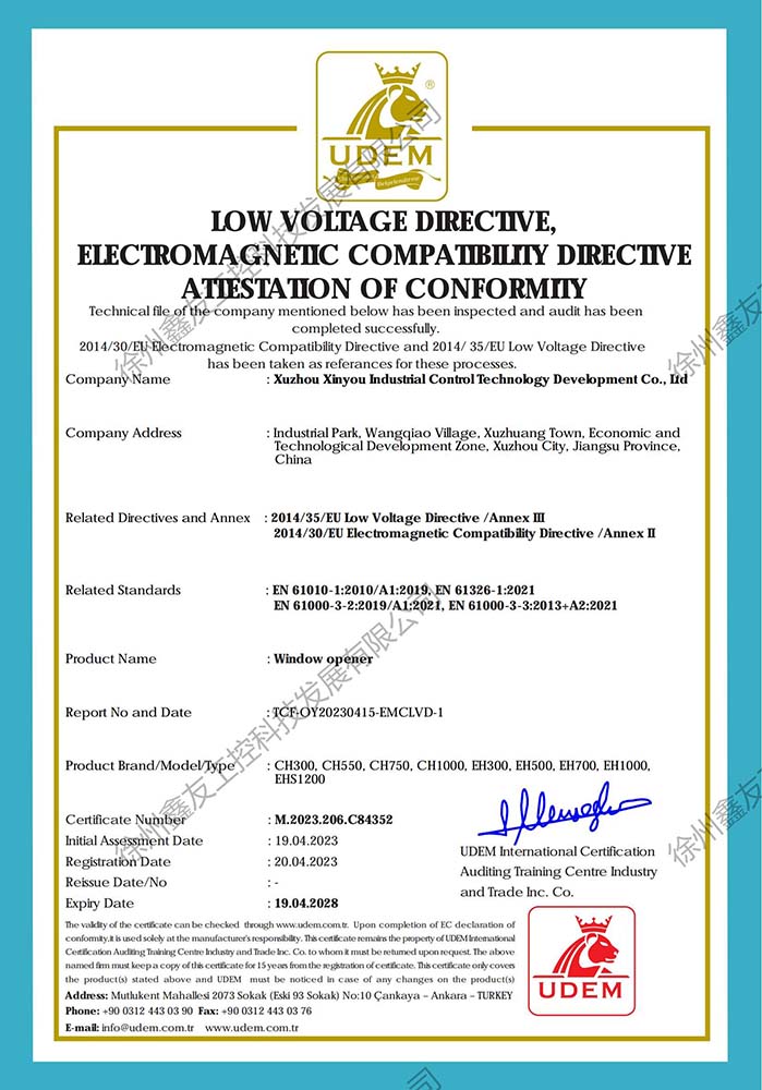 徐州鑫友工控科技發(fā)展有限公司成立于2008年,占地31600平方米,全資子公司:江蘇良紫工程科技有限公司,旗下 有“鑫友”及“MASTER.W主人窗控”兩個(gè)品牌系列,公司全面貫徹執(zhí)行IS09001:2015質(zhì)量管理體系標(biāo)準(zhǔn),產(chǎn)品順利通過歐盟CE認(rèn)證和中國***消防電子產(chǎn)品認(rèn)證,通過可燃性粉塵環(huán)境下、爆炸性環(huán)境下防爆合格產(chǎn)品檢驗(yàn)。排煙天窗整窗通過***消防產(chǎn)品質(zhì)量監(jiān)督檢驗(yàn)中心檢測。先后獲得多項(xiàng)******及榮譽(yù)證書。集研發(fā)、加工、生產(chǎn)、制造、銷售、安裝及售后于一體,是一家高起點(diǎn)、研發(fā)能力強(qiáng)的專業(yè)智能化***技術(shù)企業(yè)。